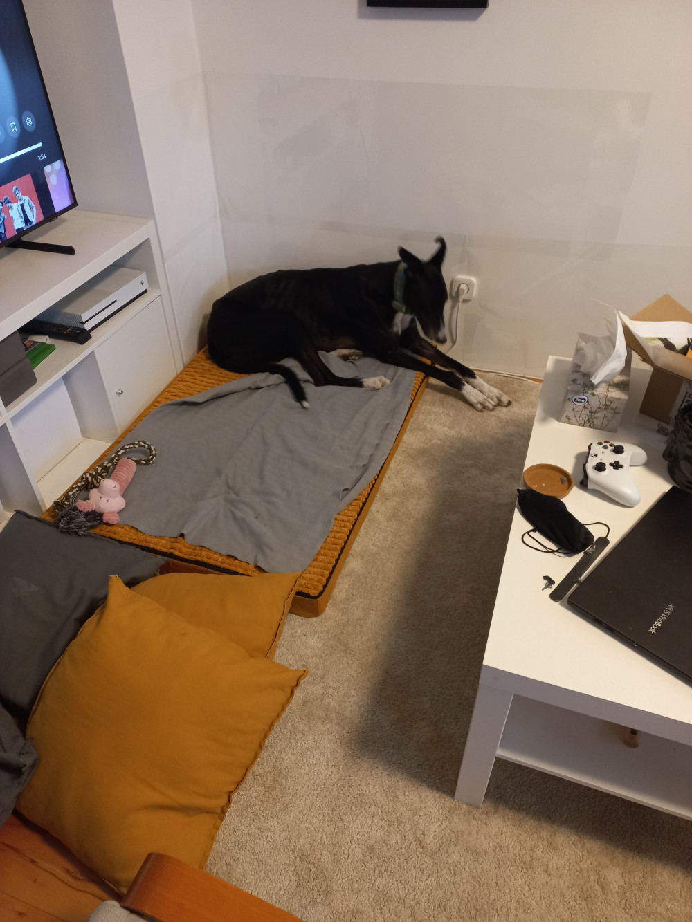 Szereti, könnyebb leküldeni a kanapéról a helyére a kutyát, mióta ez a matraca.