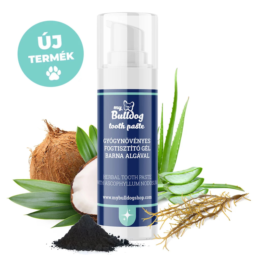 Egy foggél telis tele a természetes válogatott alapnyagaival. Ne keresgélj tovább, ha kutyád fogai ápolásra szorulnak. Hidd el, imádni fogjátok a My Bulldog Tooth Paste barna algás foggélt!