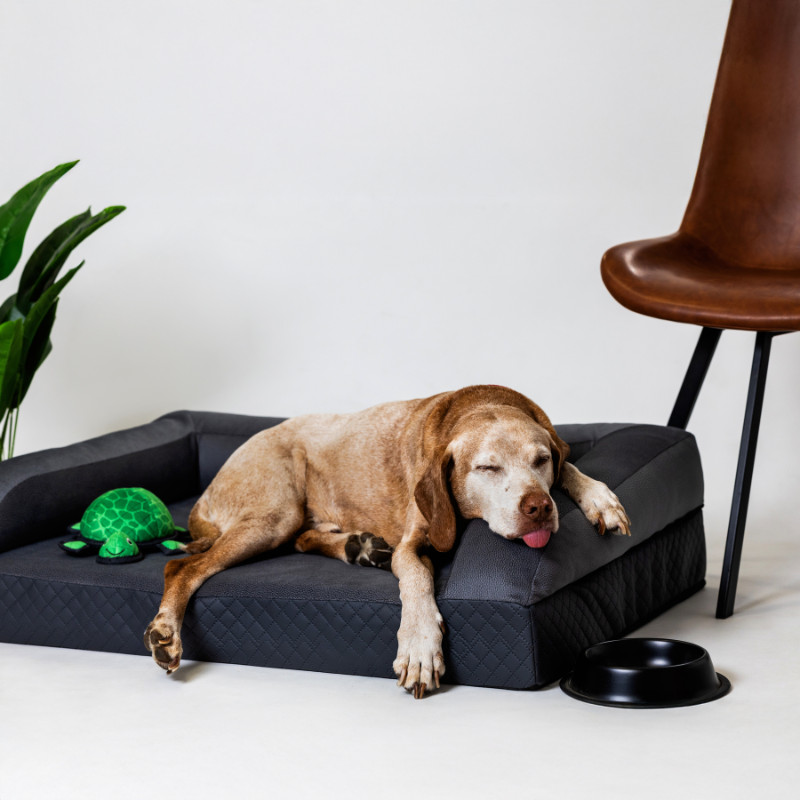 Ez a modern megjelenésű, sötétszürke ortopéd kutyafekhely a tökéletes választás azoknak a gazdiknak, akik nem csak a stílusra, de kedvencük egészségére és kényelmére is figyelnek.